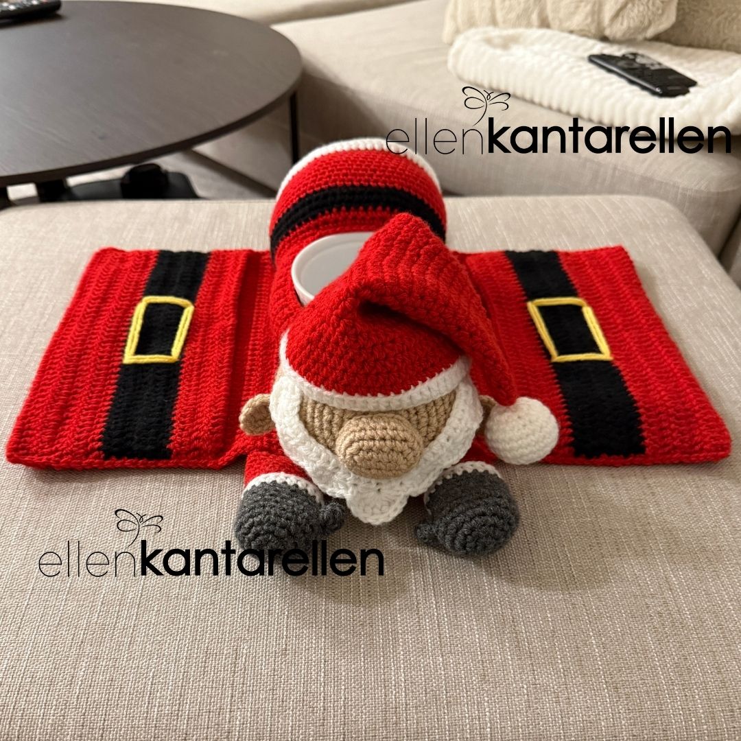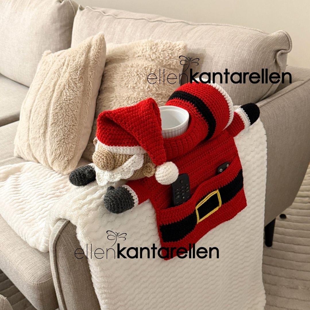 Mönster på supersöt Tomte Soffaförvaring att hänga över armstödet på din soffa eller fåtölj! När du betalat för mönstret kommer du automatiskt att kunna ladda ner din PDF-fil med ditt nya mysiga mönster som kommer i mejl till dig! (Du hittar mönstret i beställningsmejlet under den högra kolumnen ”Nedladdning”)