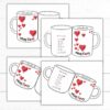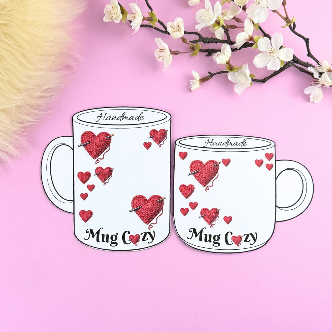 Utskriftbara Display/mallar med Hjärtan för virkade Muggvärmare