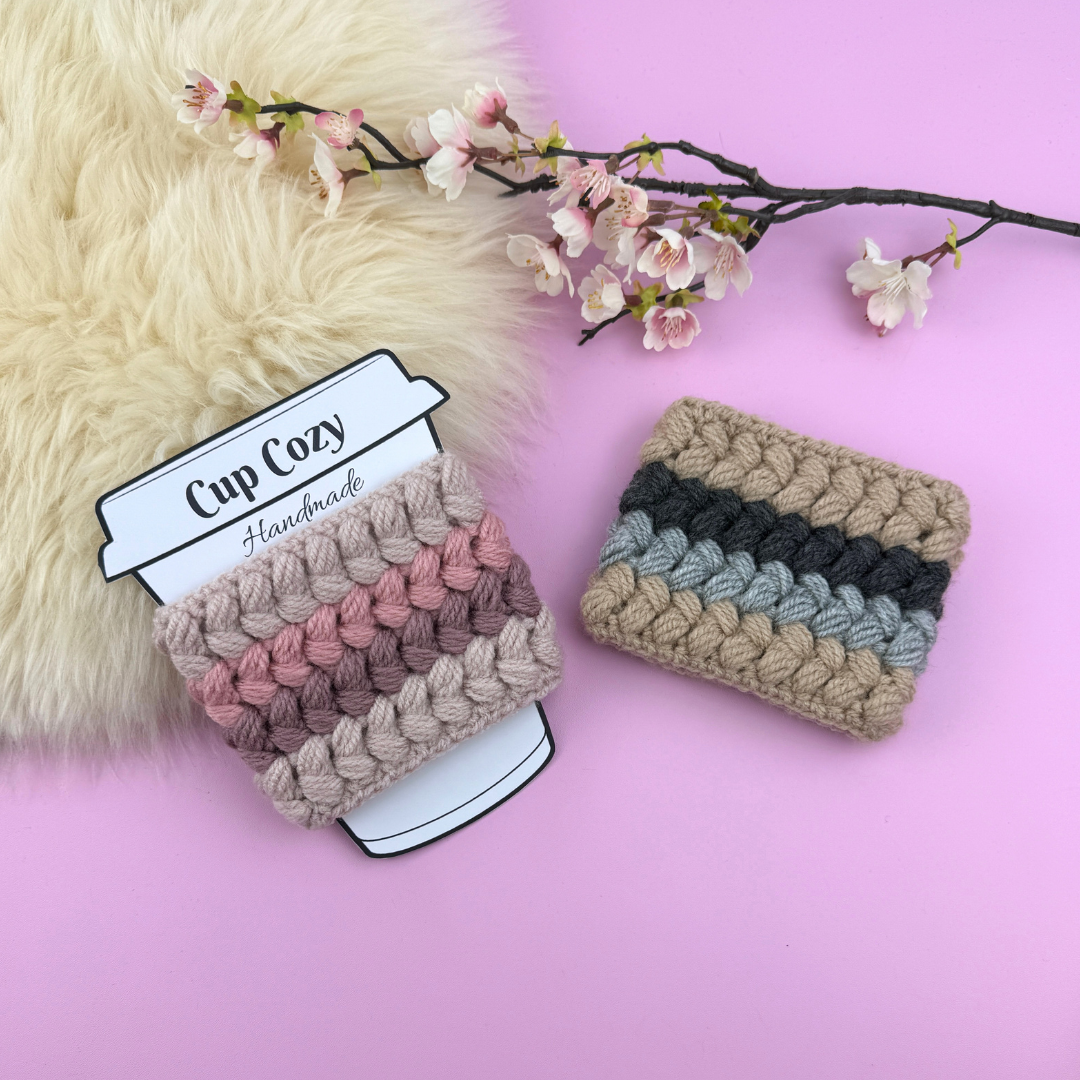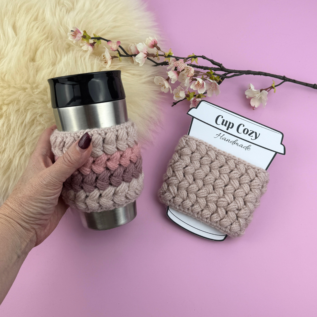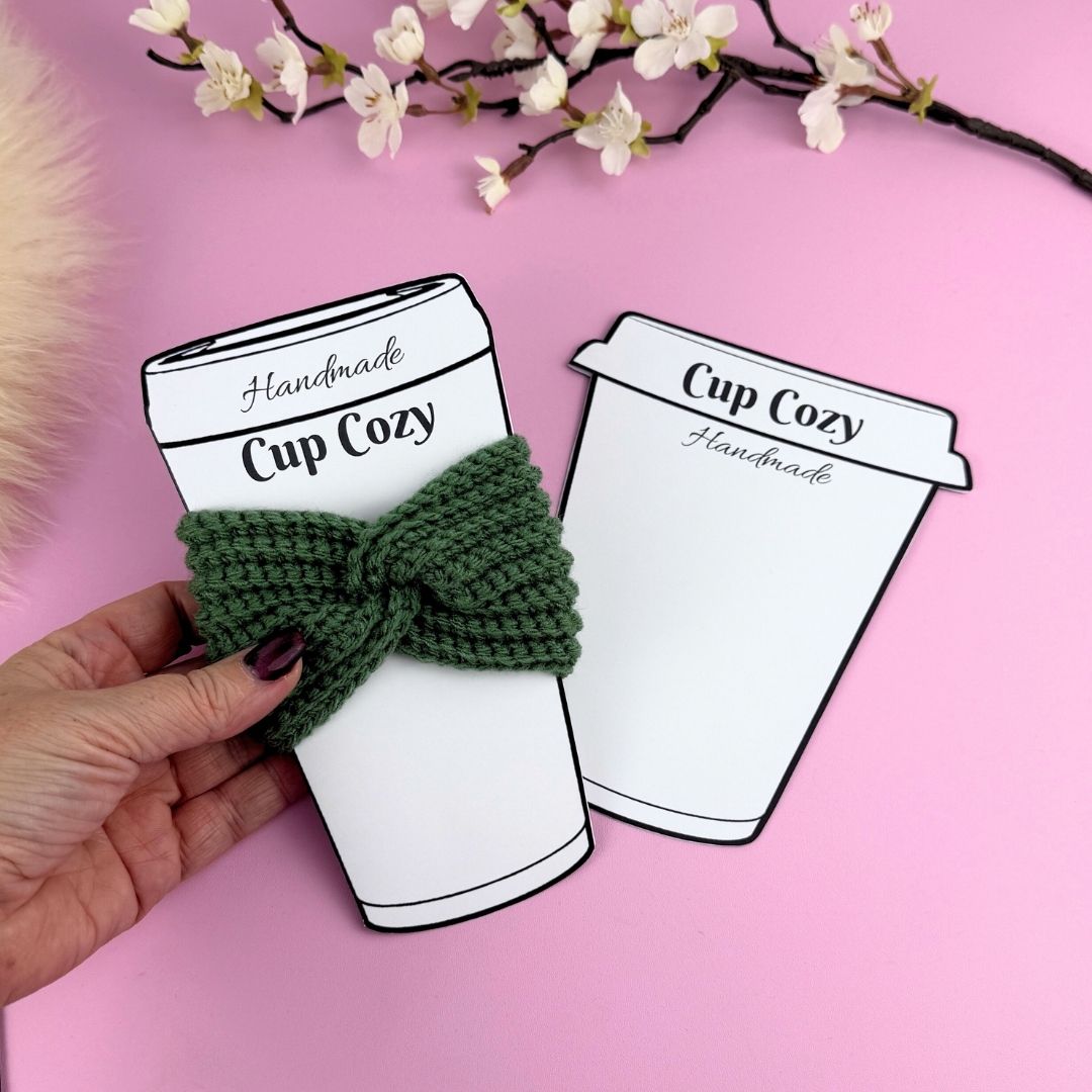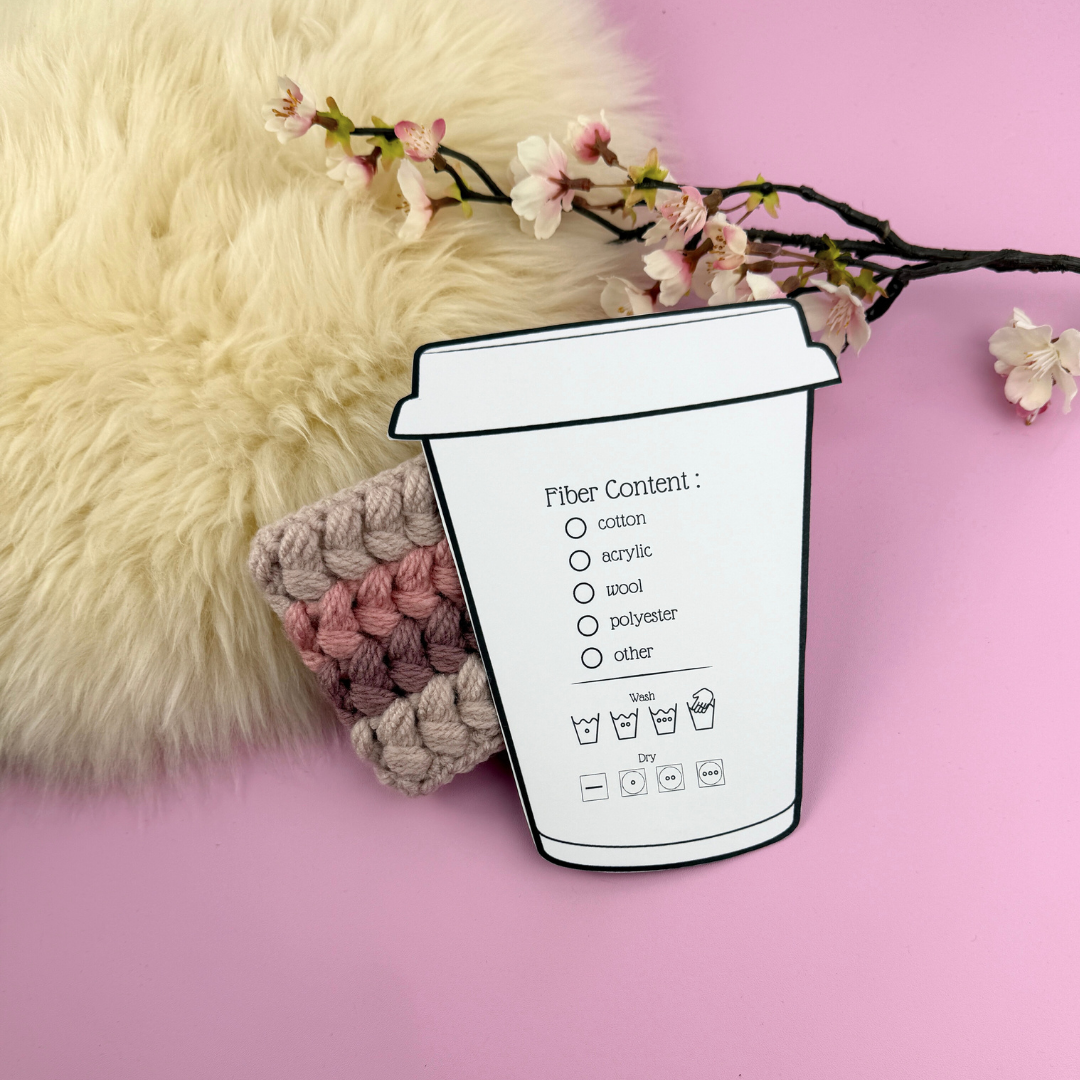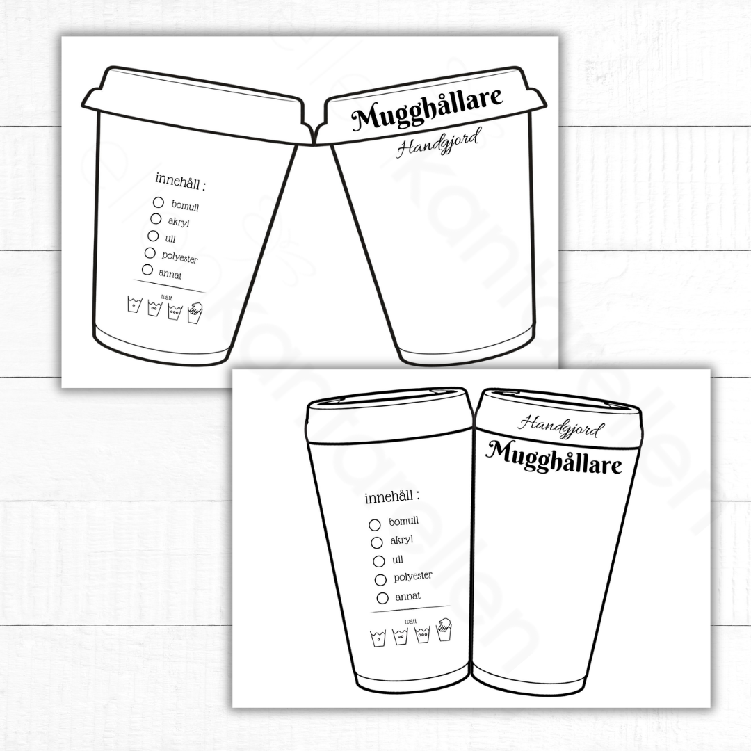 Virkmönster på supersöta Muggvärmaren Rosebud samt utskriftbar etikett/display för dina handgjorda muggärmare. Fram- och baksida med innehåll och tvättinstruktioner på baksidan. Fyra olika utseenden två vanliga muggar (med örat både åt höger och vänster) och två ”to go” muggar. Dessa är perfekta om du ska sälja eller som en underbar present till någon du tycker om! Mallar med både Svensk & Engelsk text! Värmaren är virkad i akrylgarn.